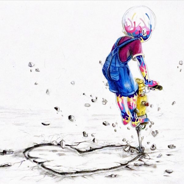 « Je me suis également réapproprié quelques icônes de la pop culture qui ont bercé mon enfance. En hommage à tous ces personnages avec lesquels on a grandi et qui s’éloignent au fil du temps comme pour symboliser le passage de l’enfance à l’âge adulte. »