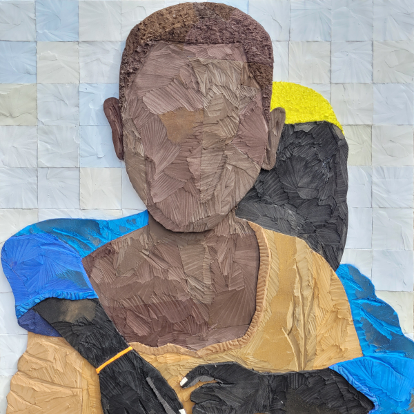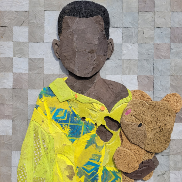 Tesprit nous invite dans l’univers contrasté des Dzimakplao, les enfants de rues du Togo et nous permet d’appréhender la précarité et la vulnérabilité, mais aussi l’enjouement et l’optimisme omniprésent dans le quotidien de ces enfants. L’artiste travaille avec des tongs usées, récupérées dans les décharges de Lomé, chacune d’elle renfermant une histoire unique, emplie de persévérance et de courage.