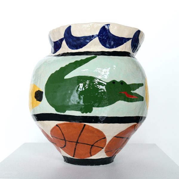 The artist is not concerned with scale or realism. Only the energy of the moment and the pleasure of painting prevail. This playfulness is reflected in his ceramics.