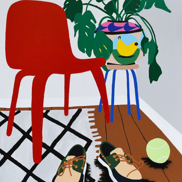 He develops an offbeat universe, driven by simple shapes and everyday objects (creating a gap with our increasingly connected society).