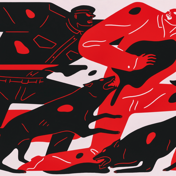 Cleon Peterson is an LA based artist whose chaotic and violent paintings show clashing figures in a struggle between power and submission in the fluctuating architecture of contemporary society.