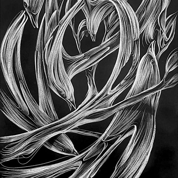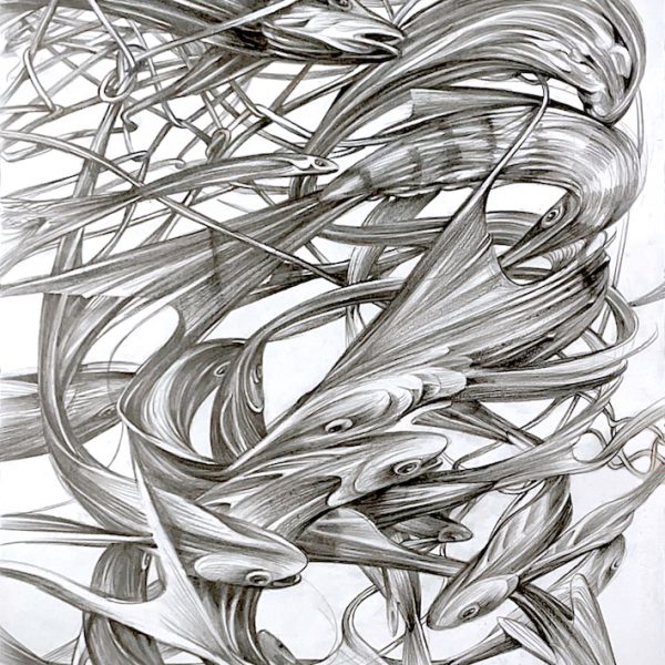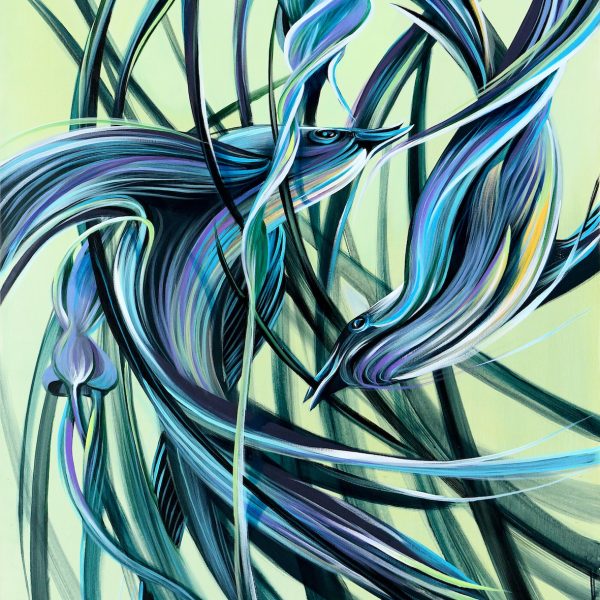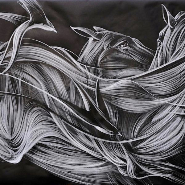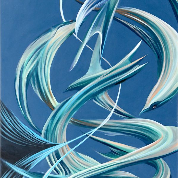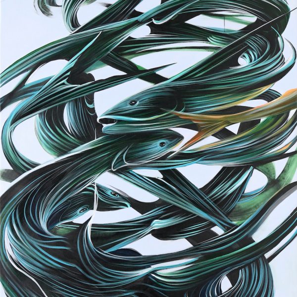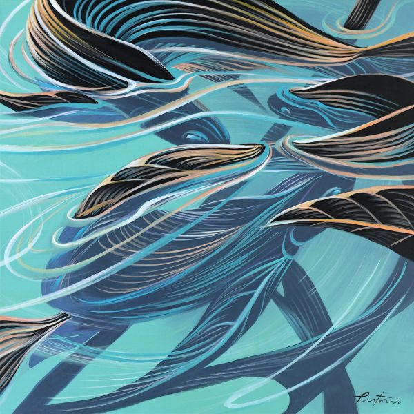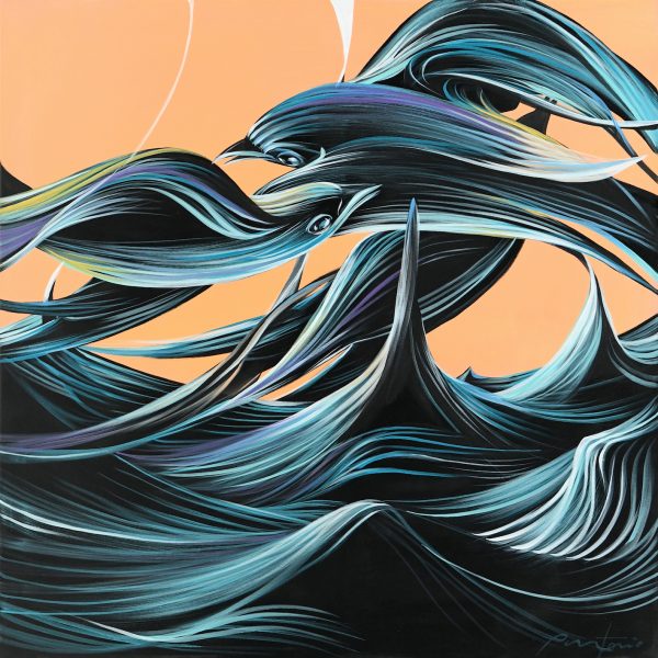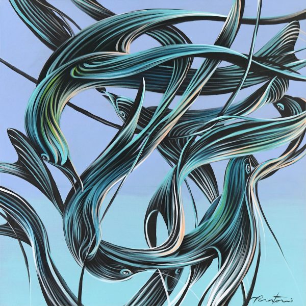 Pantonio has always been influenced by the River Tage, which flows through Portugal. With his brush, he creates characters, fantastic animals, rabbits, fish and turtles, always in motion. Occasional rope-like strokes evoke fishing and the marine world so cherished in Portuguese tradition. The deliberate use of four dominant colors – blue, black, white and red – is reminiscent of the dark blue of the sea, the black of the ocean floor and the volcanic red of the center of the Earth.