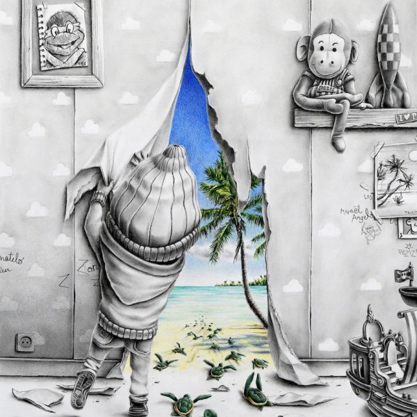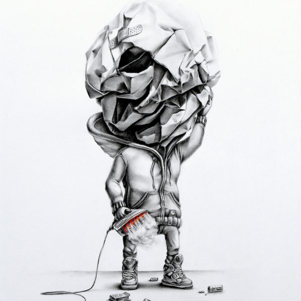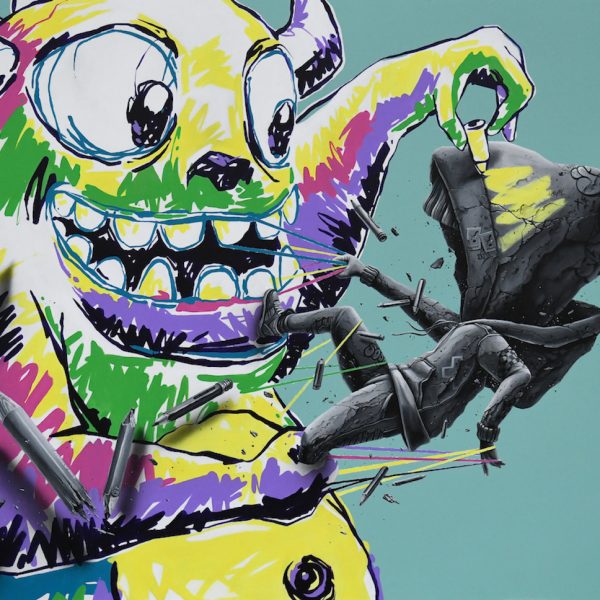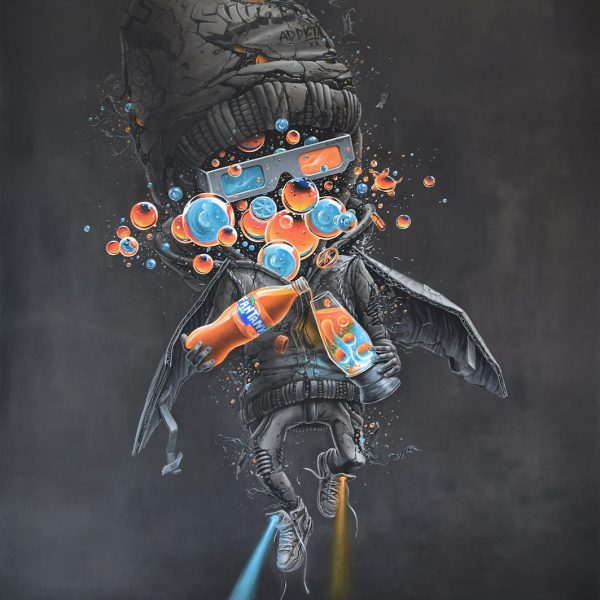 Pierre-Yves Riveau aka PEZ has been influenced from an early age by graffiti and hip hop culture, and by a host of artists such as Klimt, Magritte, Escher, Dali, Banksy, Kaws and many others. Most of the time, he works unconventionally, almost exclusively from his imagination, and sometimes the process serves the idea and not the other way around. When Pez was a child, he used to hold his pencil incorrectly, and his teacher punished him frequently. He still does, and that’s not going to change.