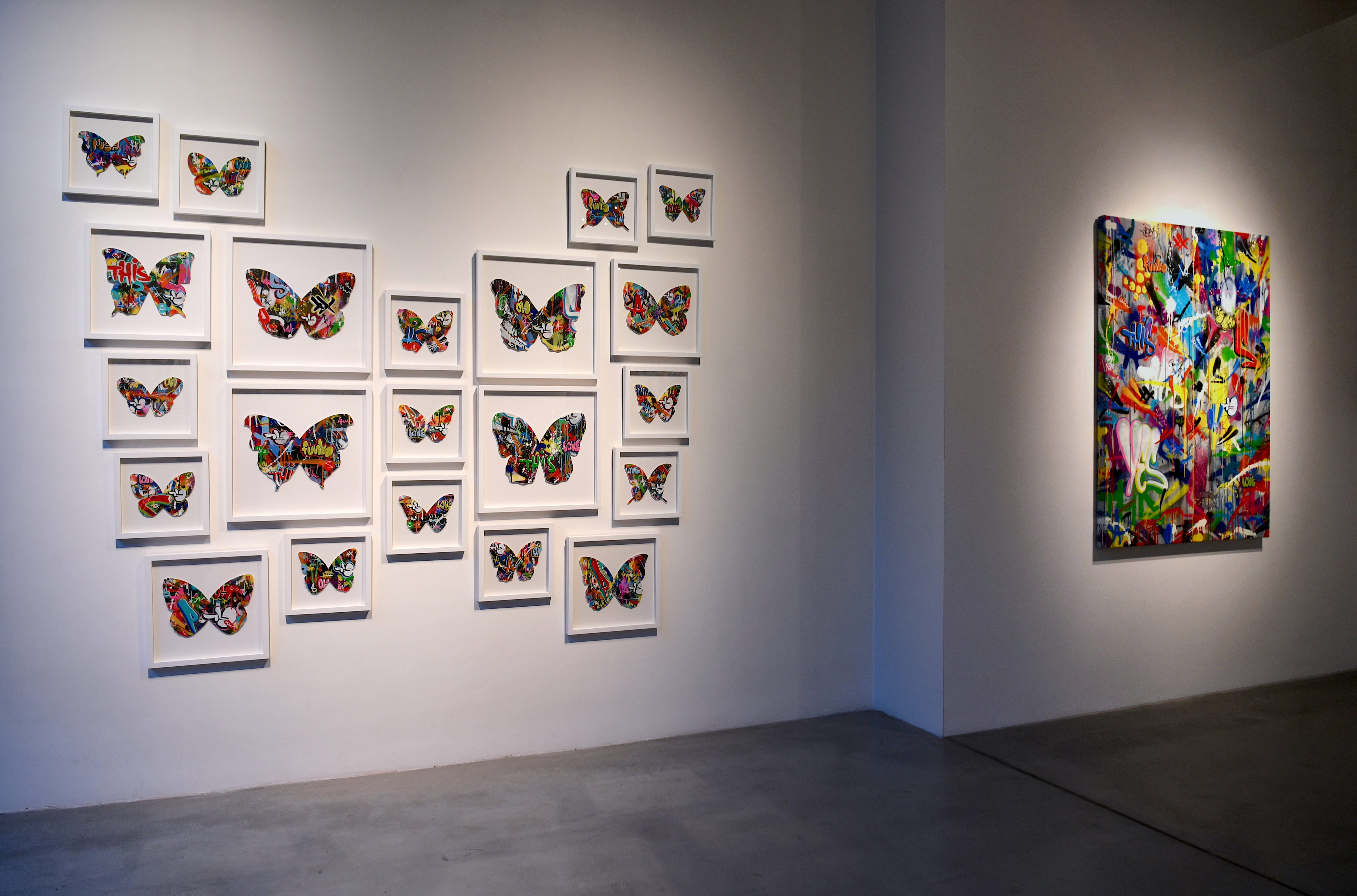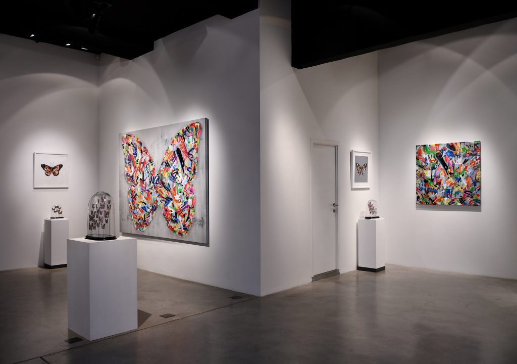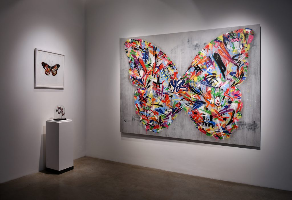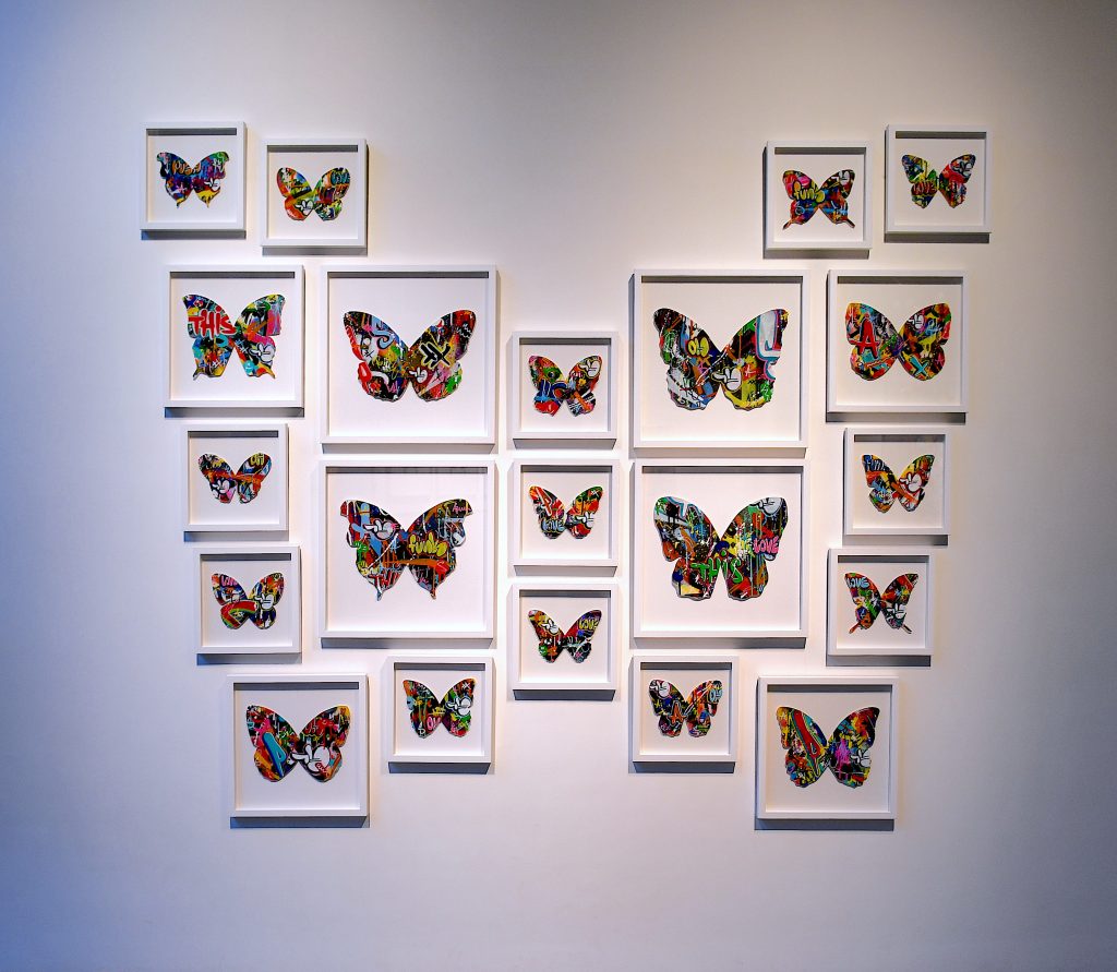 The insect is celebrated in all its forms: in installation, painting, paper and silkscreen printing.