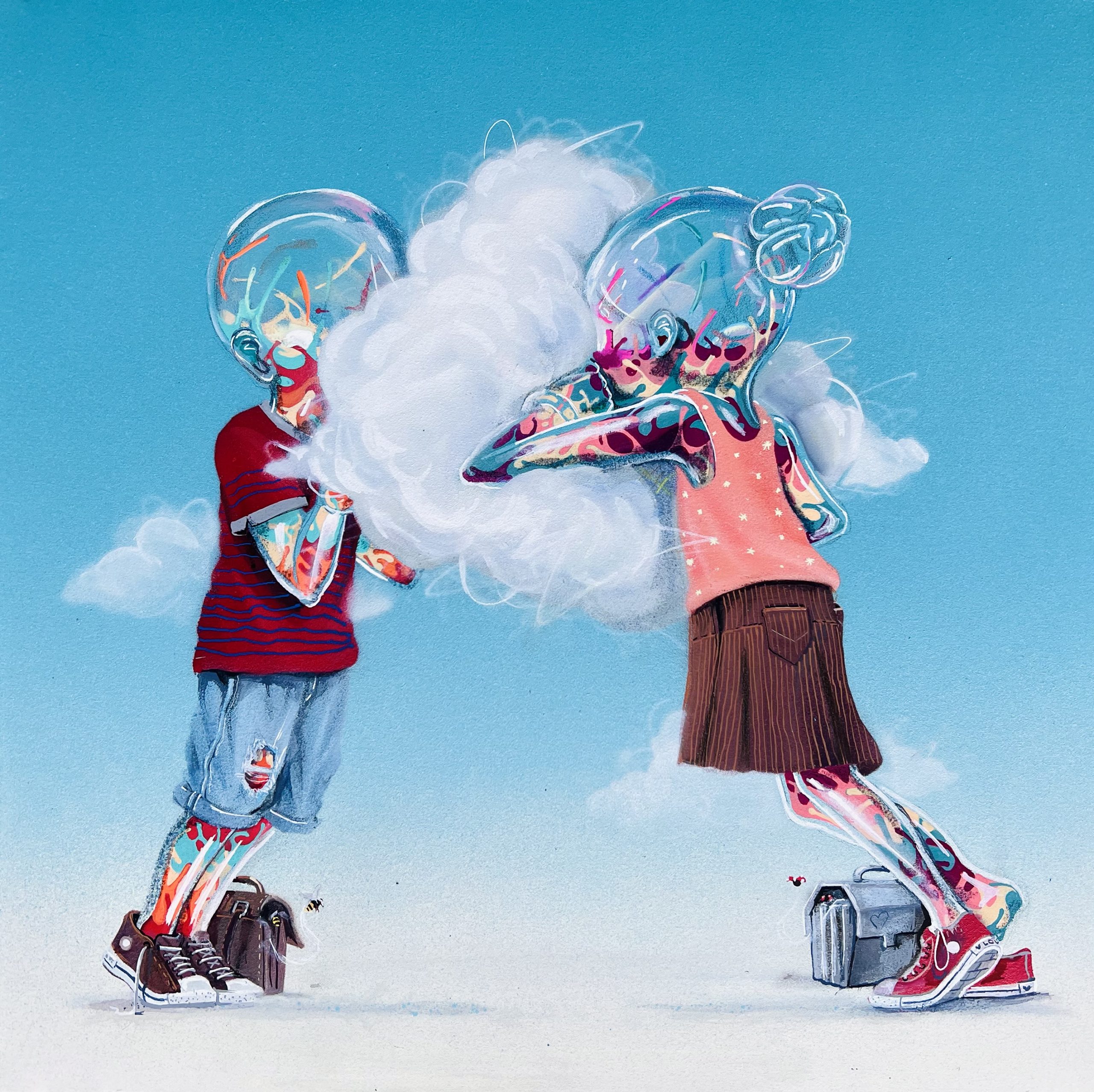 Acrylic painting and spray paint on canvas, 40 x 40 cm, 2026