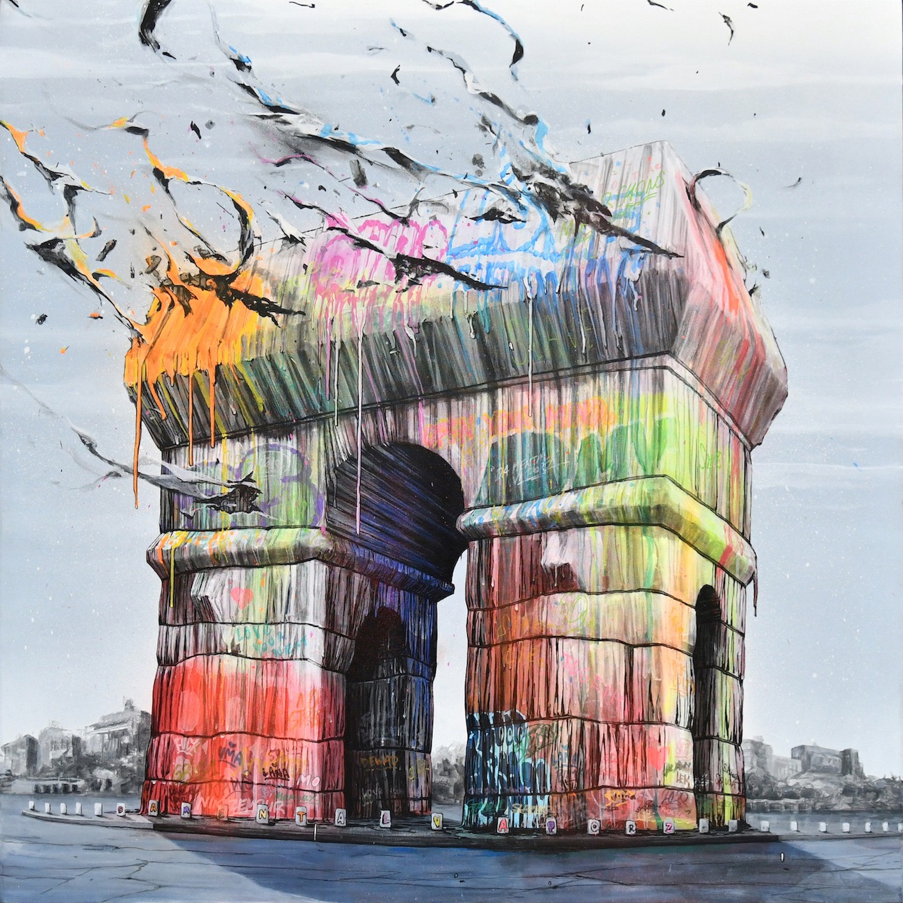 Acrylic painting and markers on canvas, 100 x 100 cm, 2022