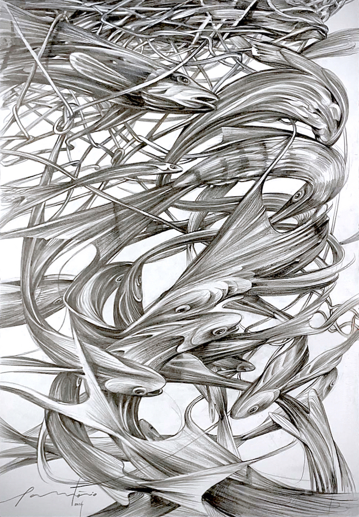 graphite and blu pastel on paper, 100 x 70 cm, 2024