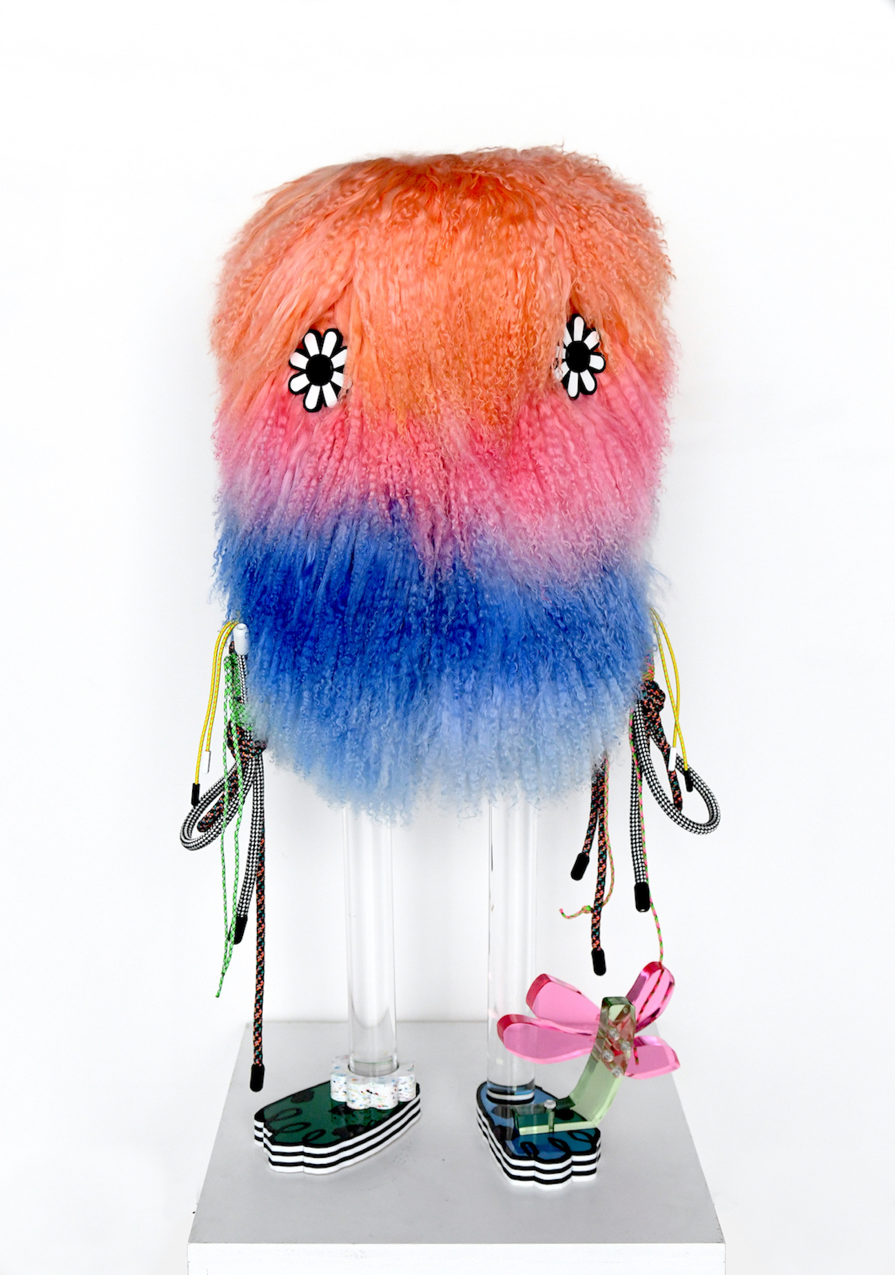 104 x 51 x 45 cm, Hand dyed Tibetan Lamb, Acrylic rods and paracords, 2024