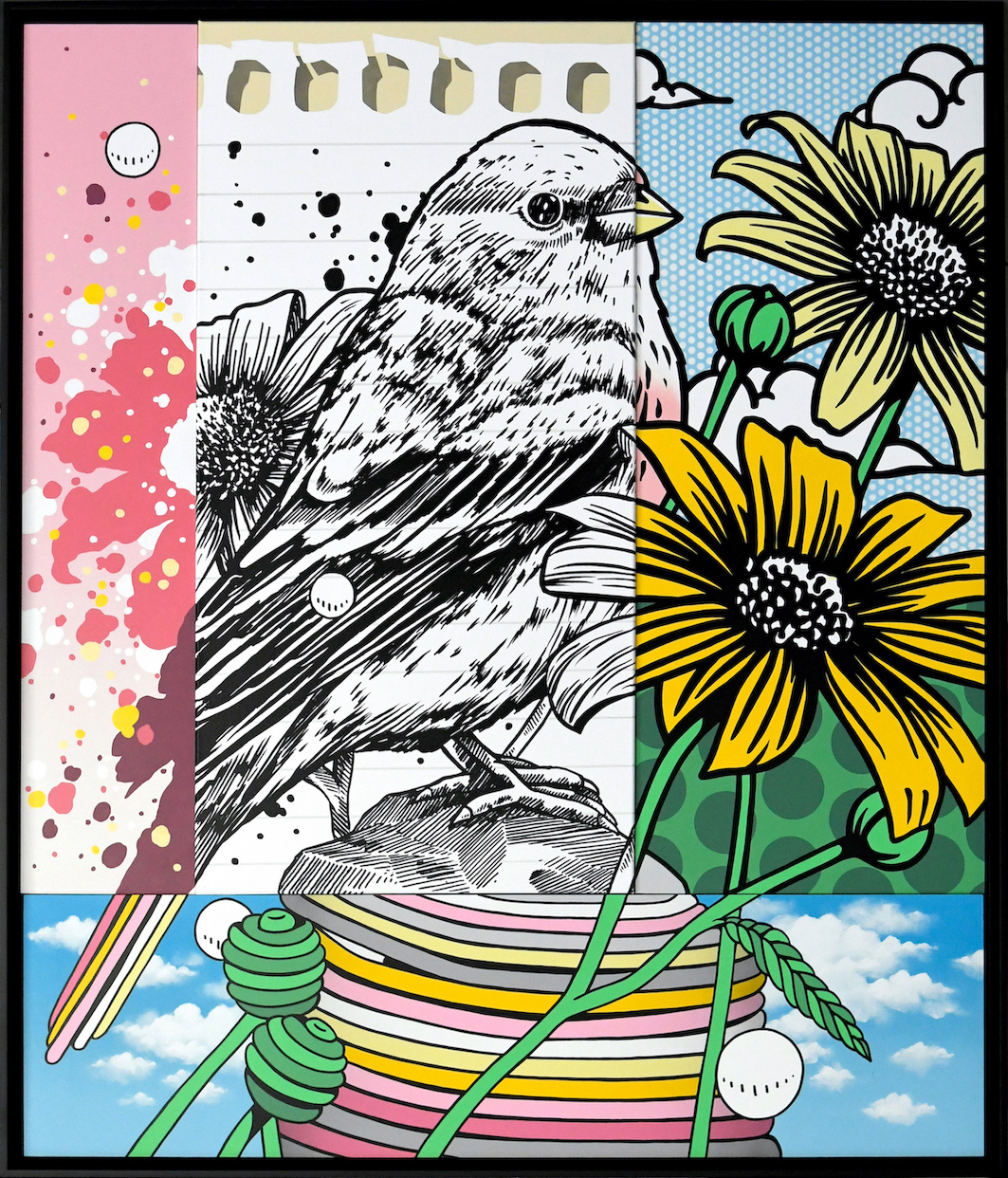 Acrylic, spray paint on canvas and wood pannel, 130 x 110 cm, 2025