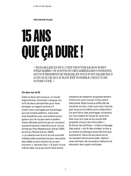 Since 2010, years of friendship and unwavering artistic complicity. Years of sharing strong messages with the public about our world and its excesses. Who could have imagined that an encounter at the École des Beaux-Arts in Caen would give birth to one of France’s most prolific and committed street artist duos? Murmure takes a look back at his career around the world, both in galleries and in public spaces, with the same determination to use art to raise awareness.