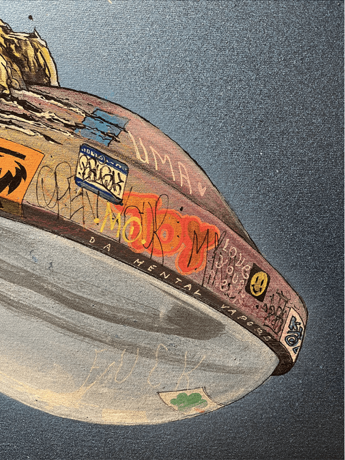 Acrylic painting and markers on canvas, 85 x 105 cm, 2023