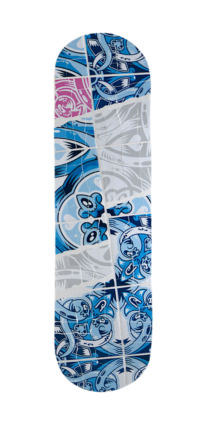 Ceramic tiles on refurbished maple wood skateboard, 80 x 20 cm, 2023