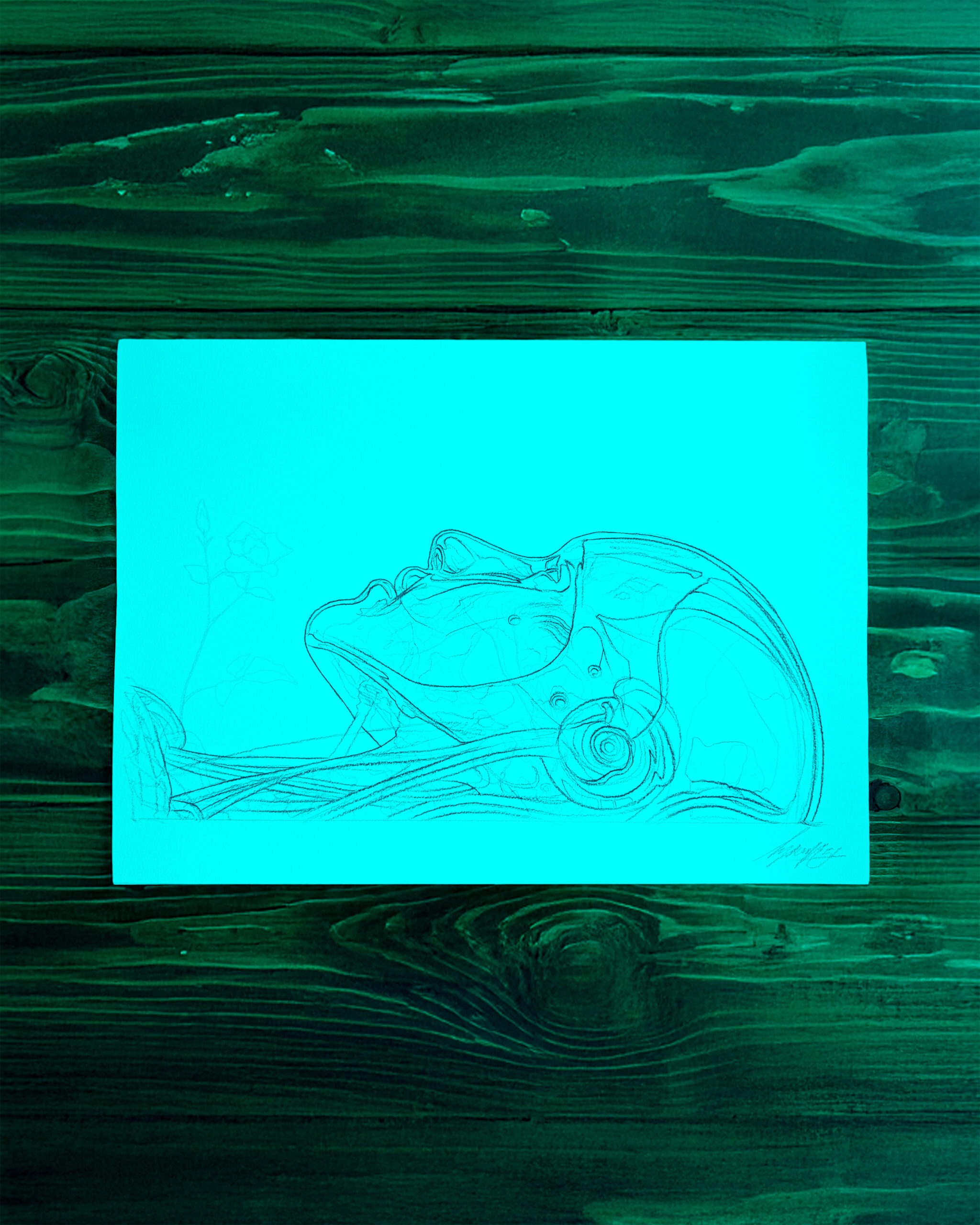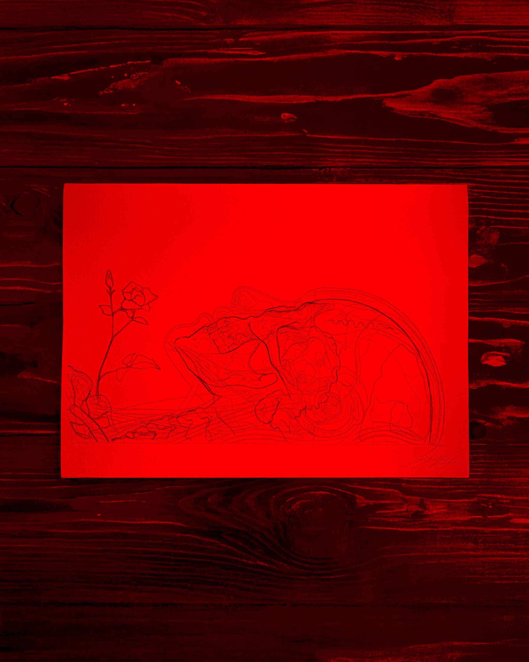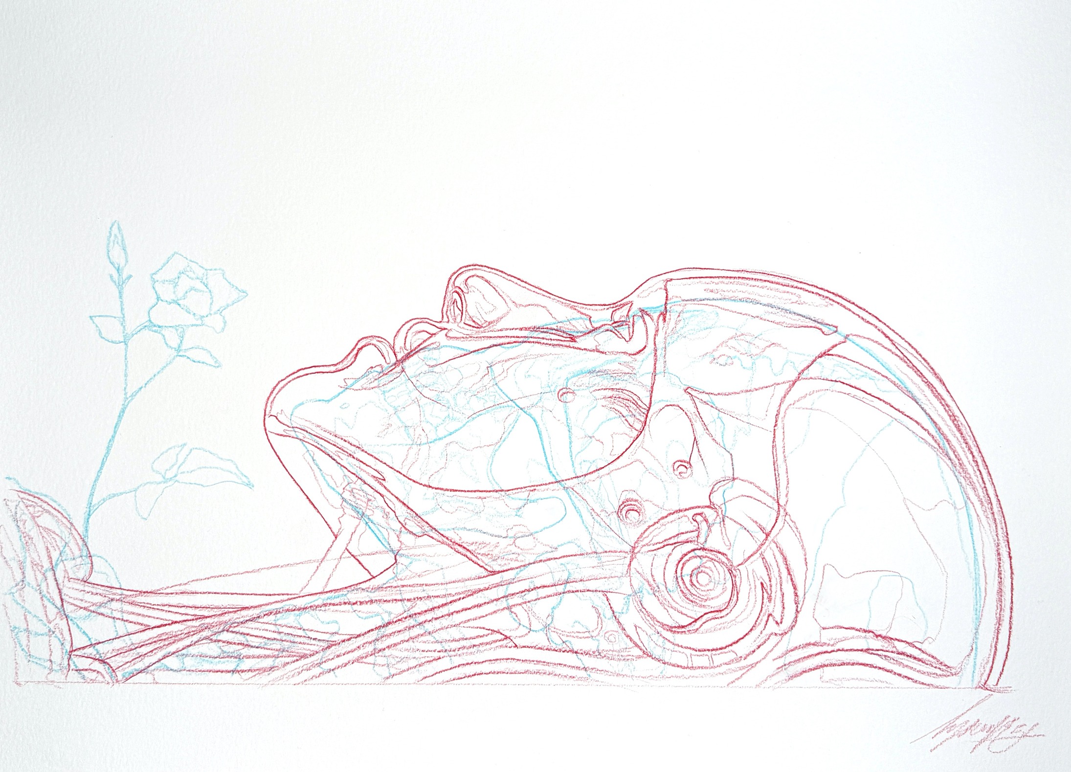 Blue and red crayon on paper, 30 x 42 cm, 2026