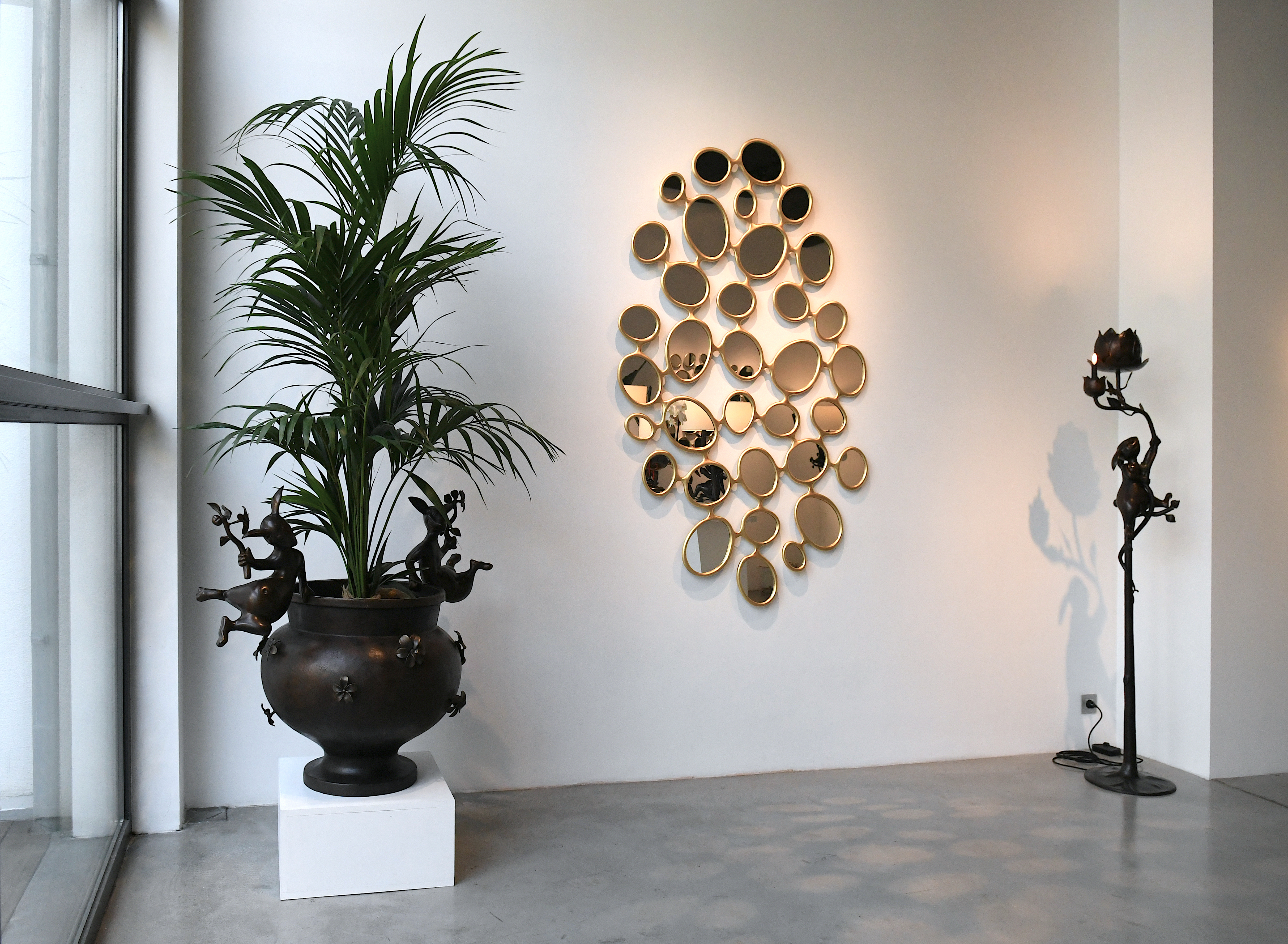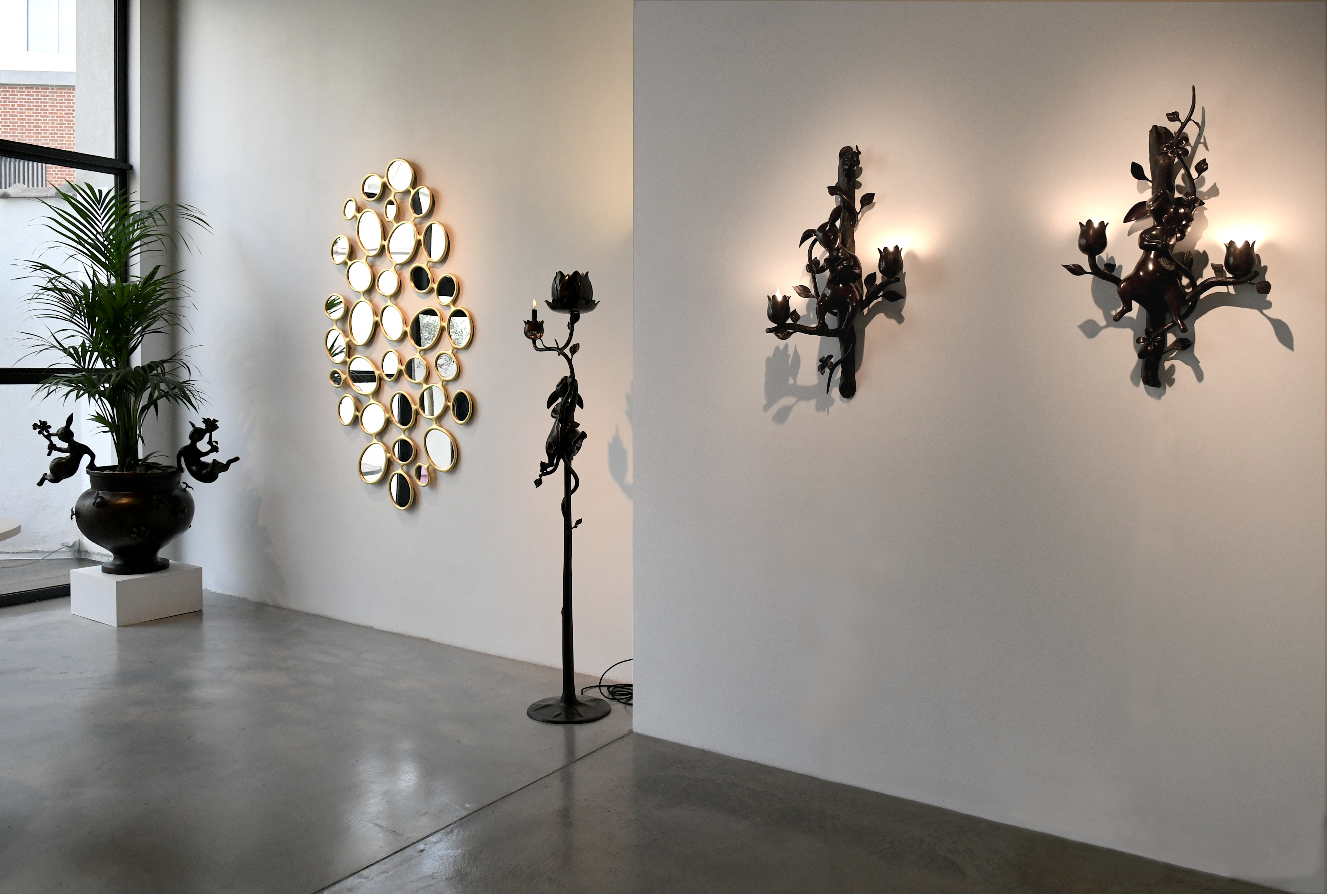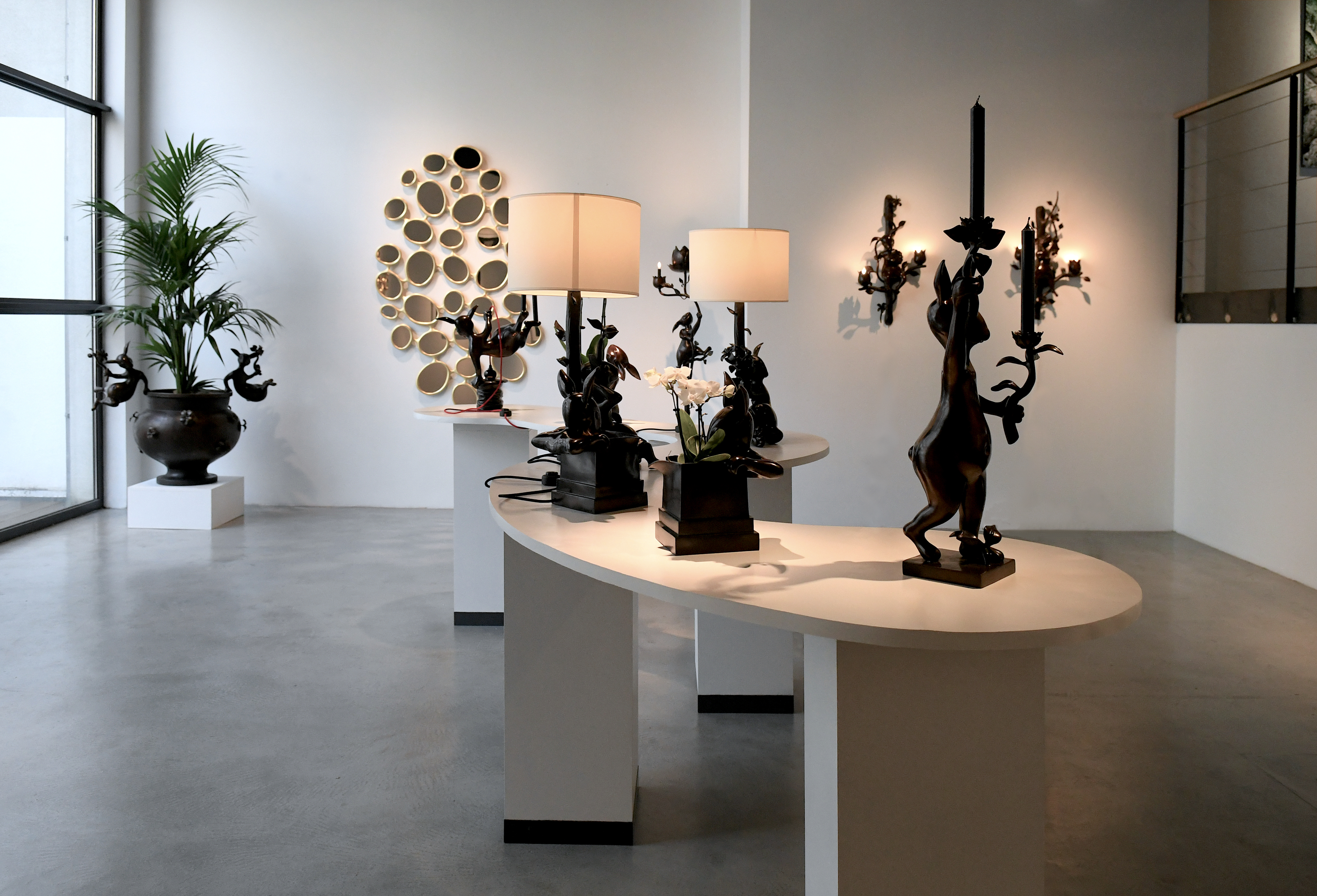 Des oeuvres en bronze patiné toujours aussi espiègles et raffinées, du lampadaire à la jarre en passant par des appliques murales.