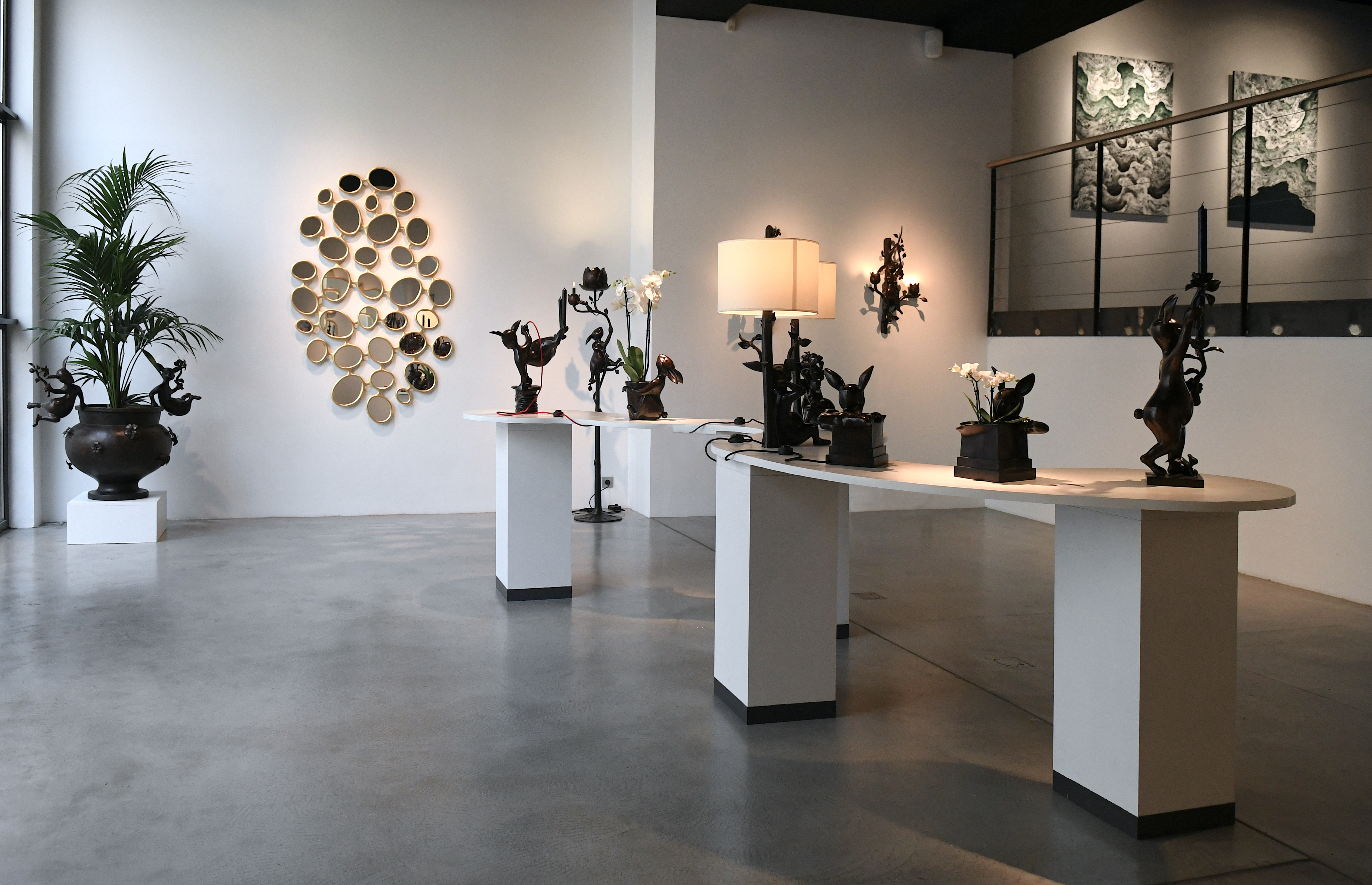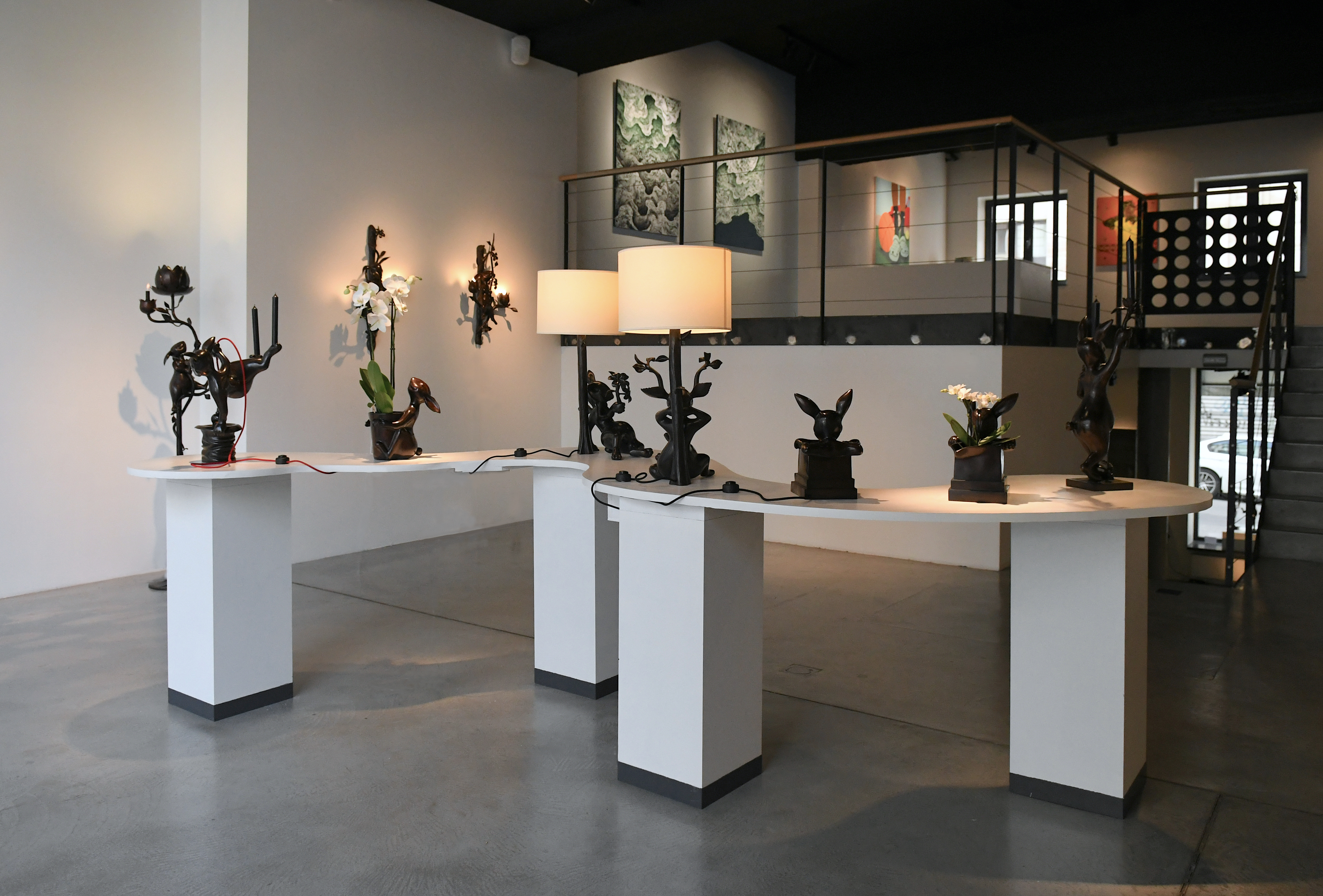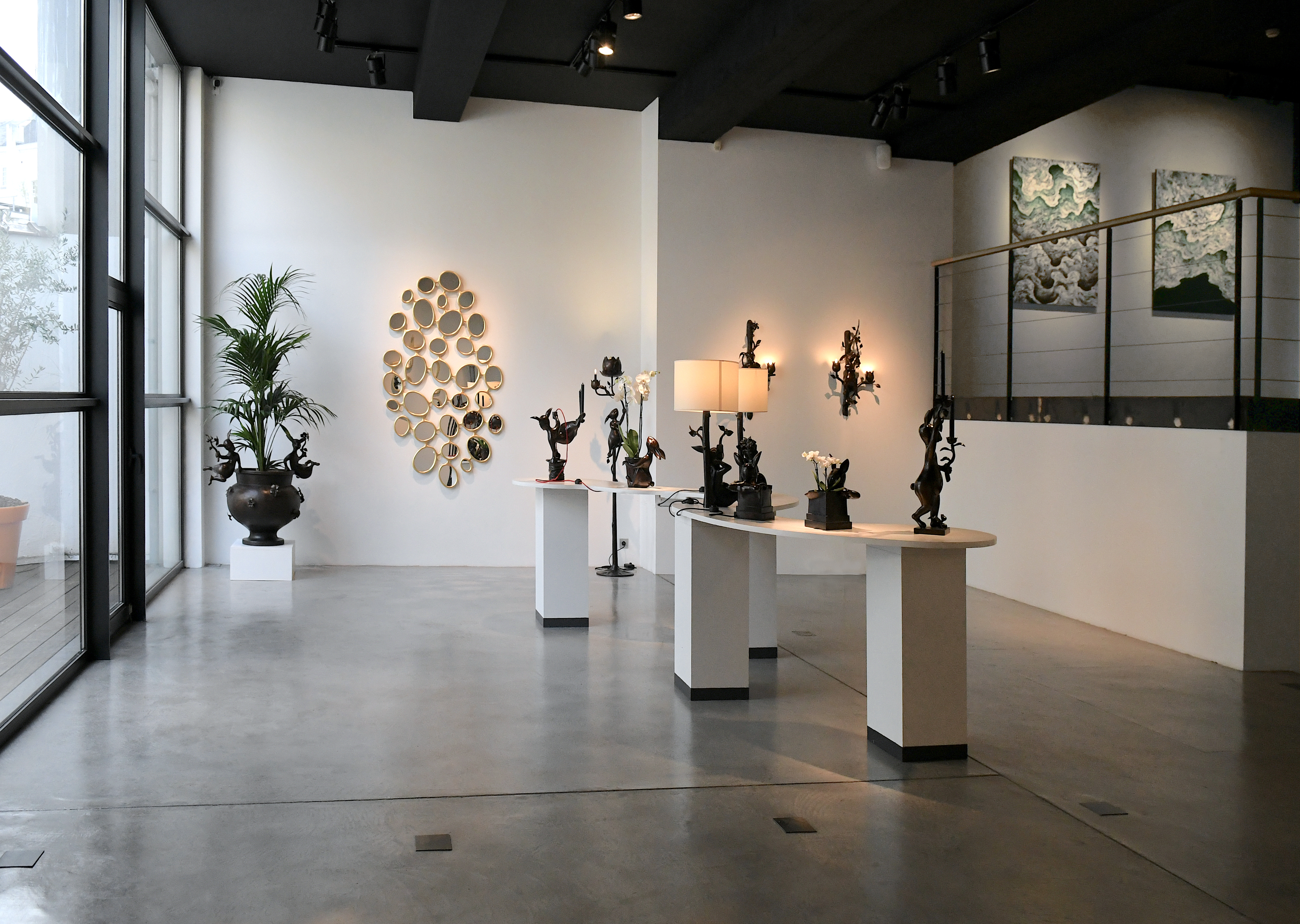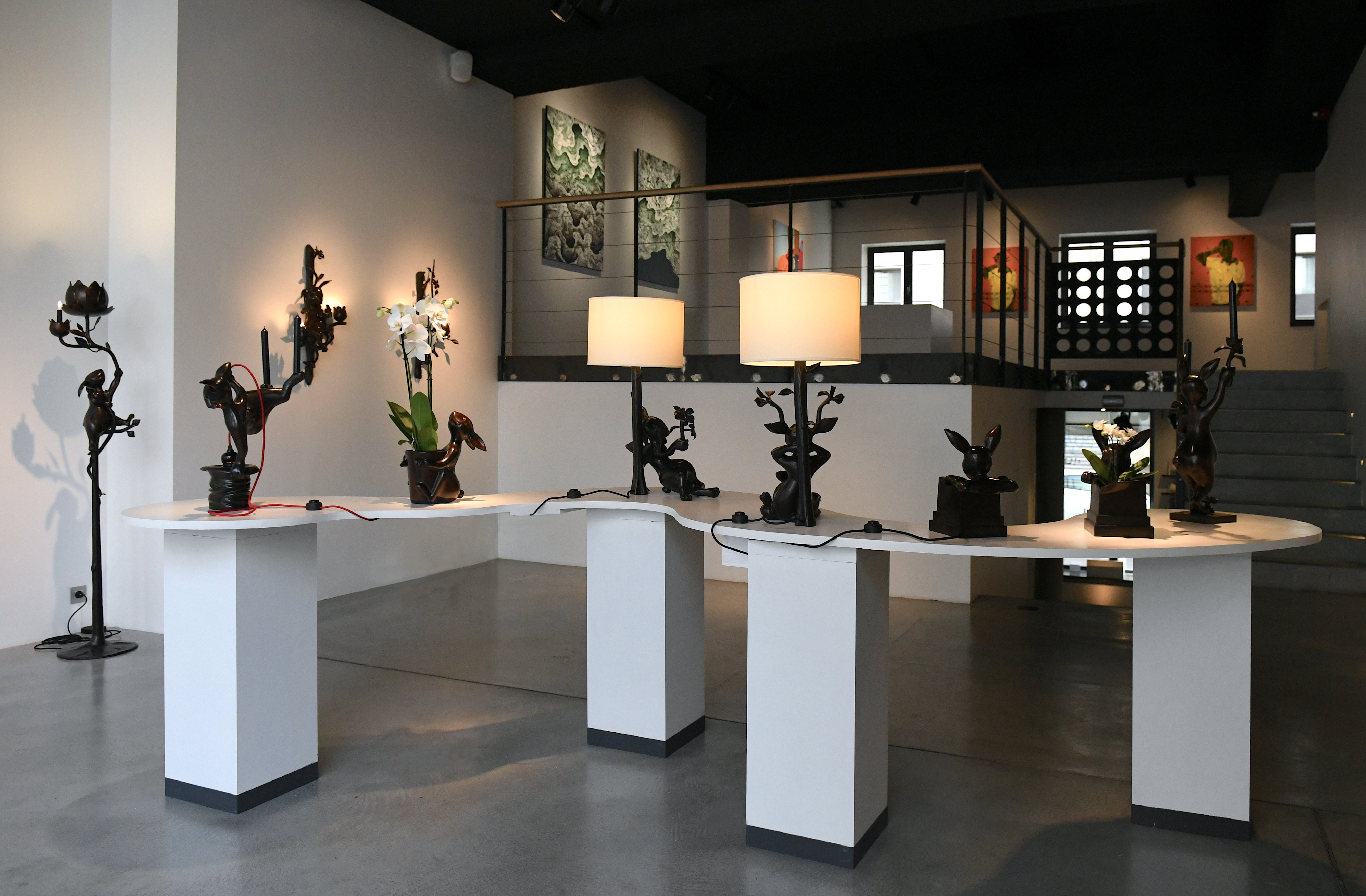 Des oeuvres en bronze patiné toujours aussi espiègles et raffinées, du lampadaire à la jarre en passant par des appliques murales.