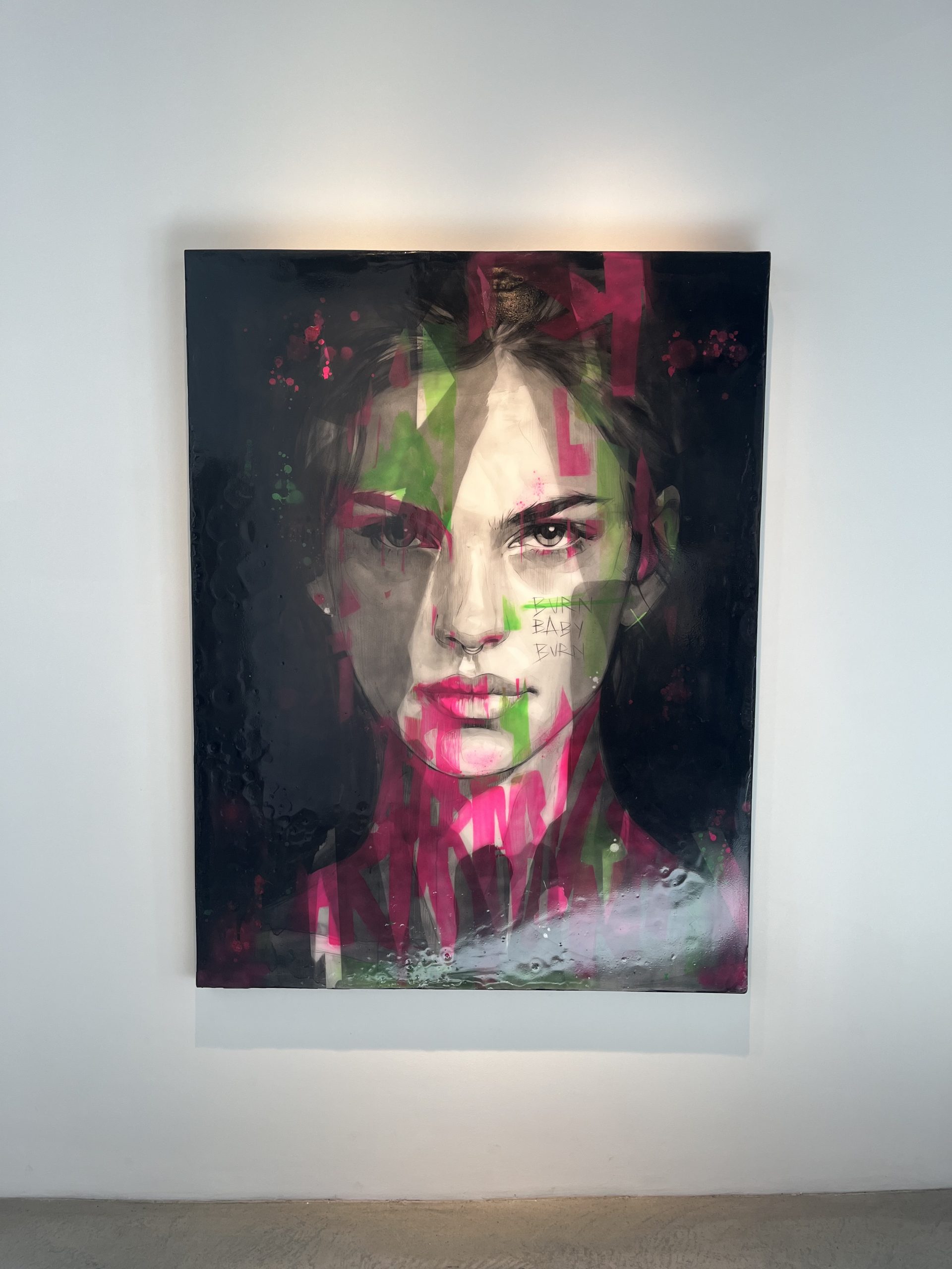 Aquarelle sur papier, peinture et résine montée sur bois, 170 x 130 cm, 2026