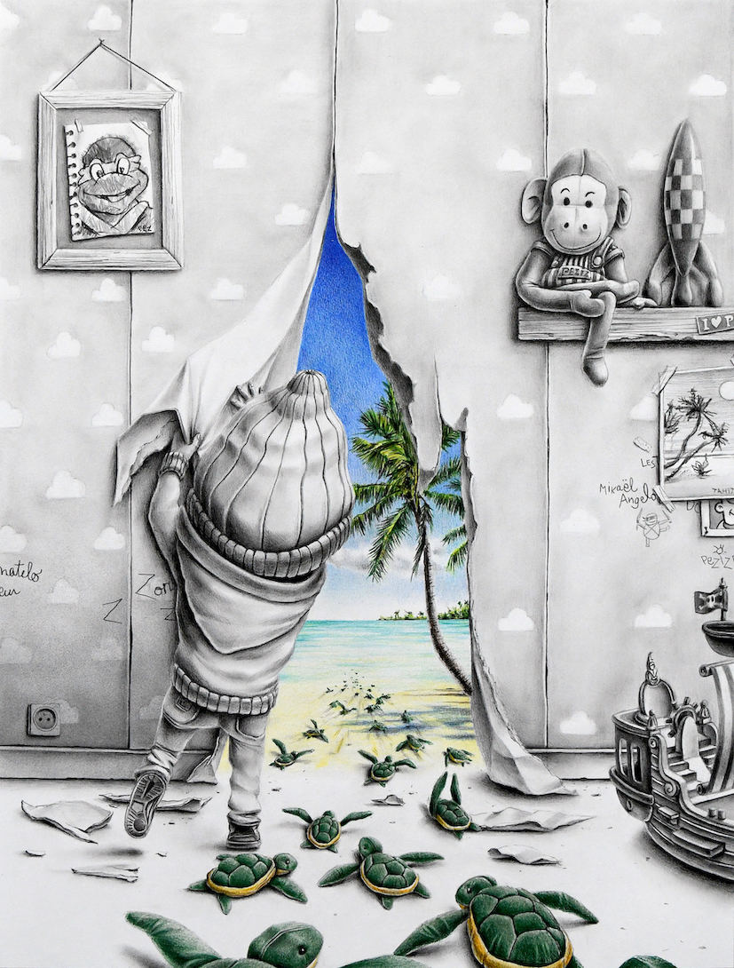 Graphite et crayons de couleurs sur papier, 61 x 46 cm, 2025