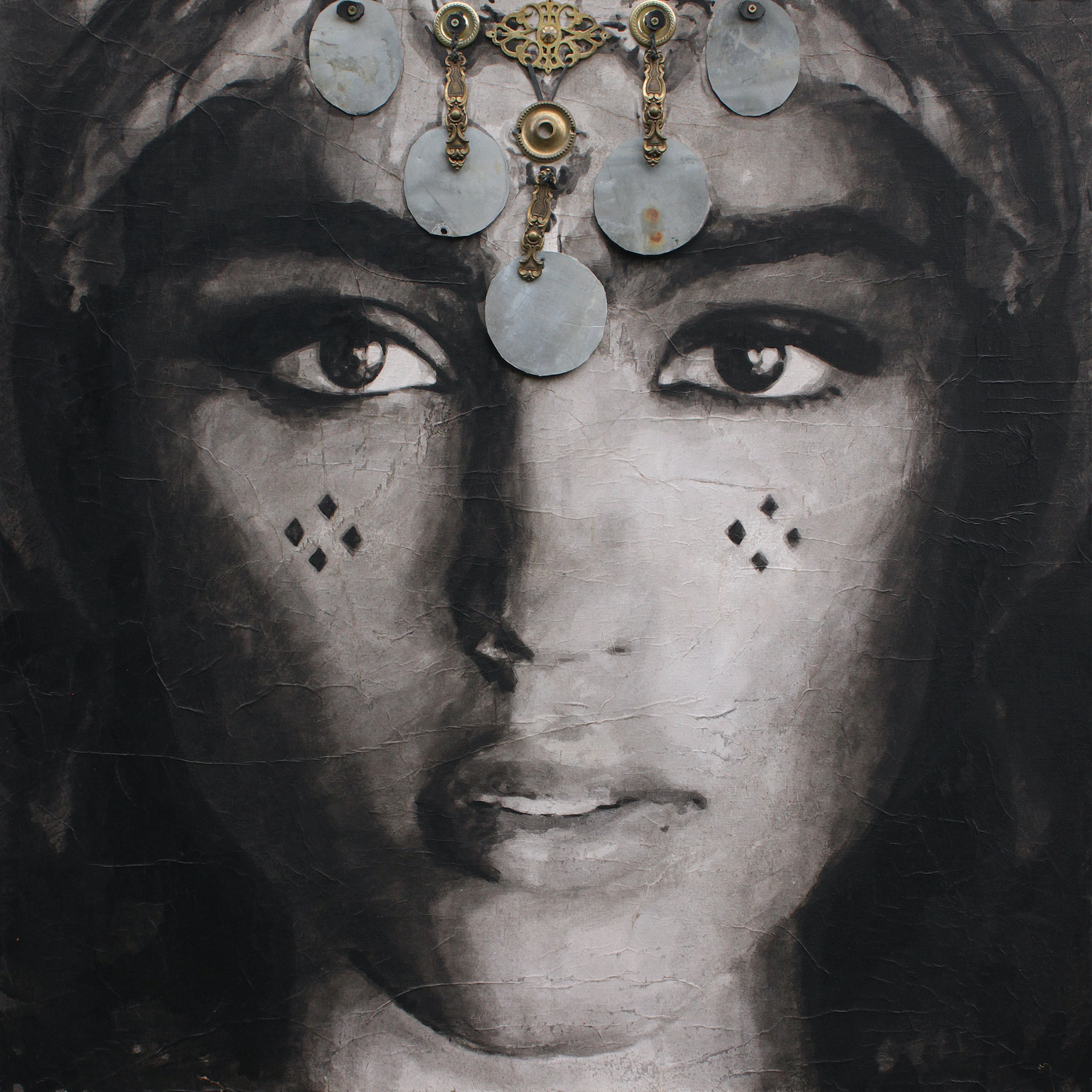 Encre de chine sur papier de soie marouflé et métal sur toile, 100 x 100 cm, 2024