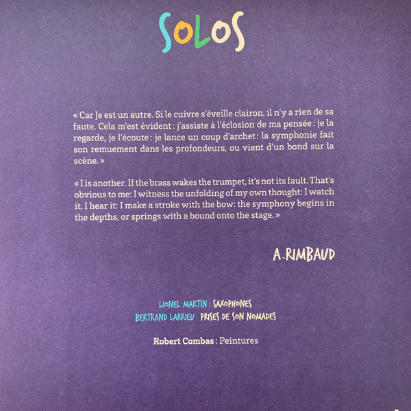 Vinyl de Lionel Martin « Solos » Art cover par Robert Combas Edition limitée 2020 Le saxophoniste Lionel Martin nous propose un voyage, tendance post-rock, avec son album joué dans la rue et sa pochette signée Robert Combas.