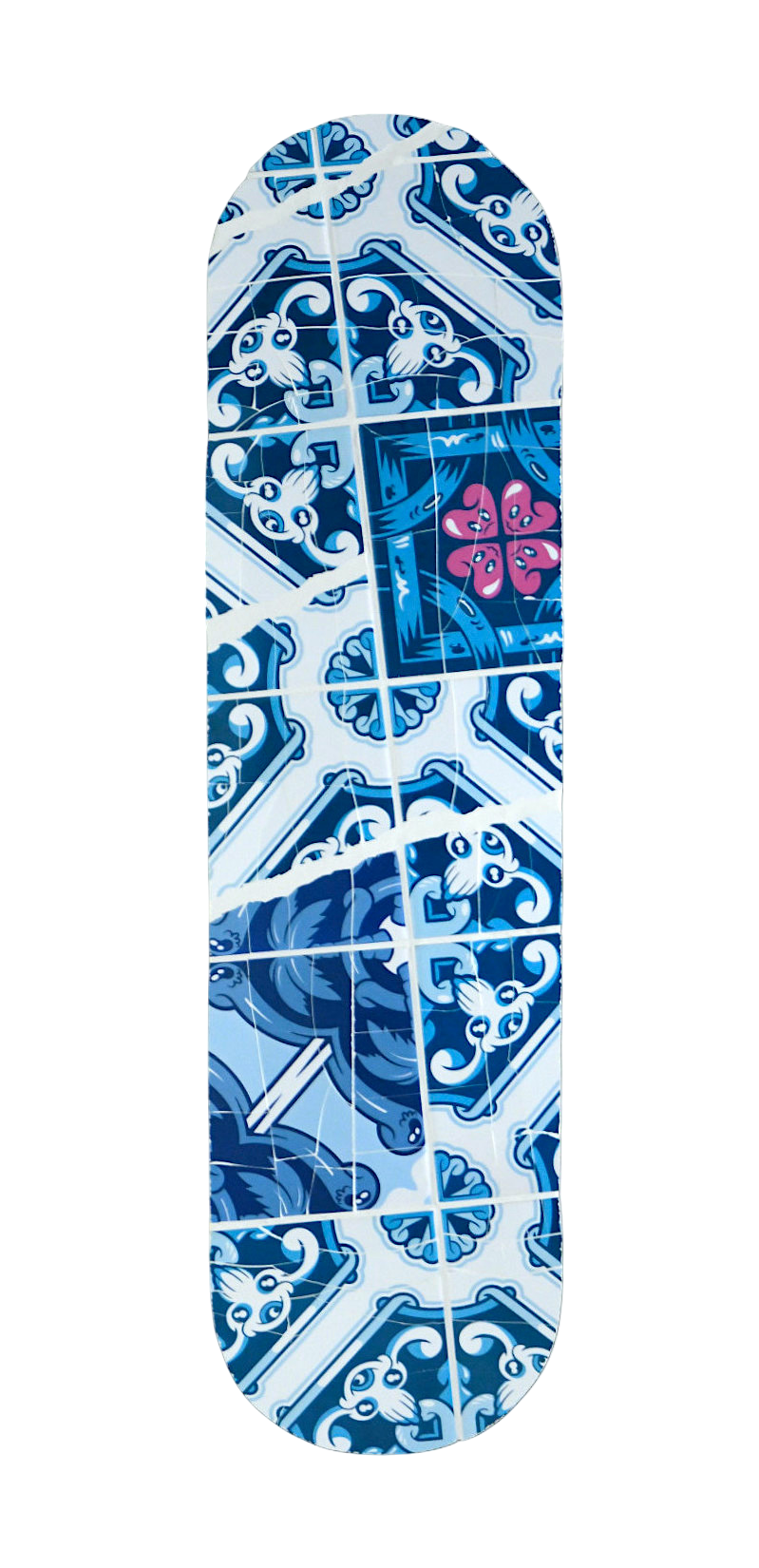 Carreaux de céramique sur skateboard en bois d’érable, 80 x 20 cm, 2023