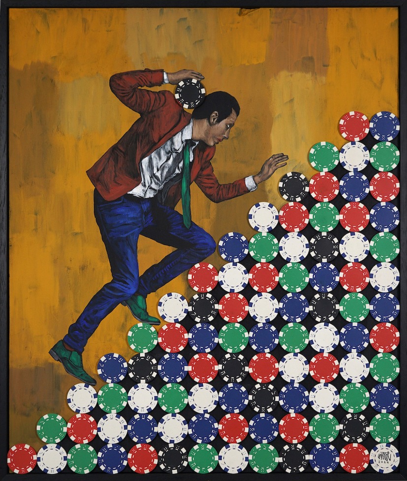 Acrylique et jetons de poker sur toile, 64 x 54 cm, 2024