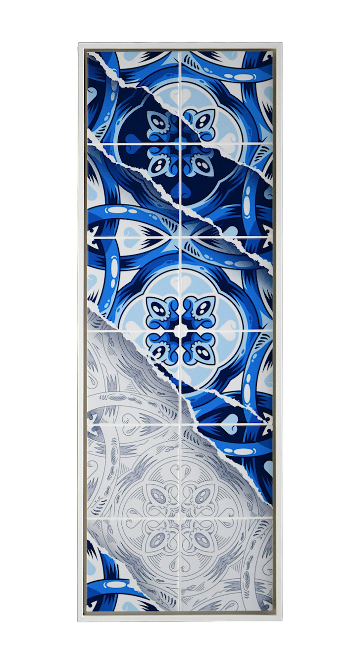 Encre gel sur céramique, cadre en bois blanc, 91 x 30 cm, 2023